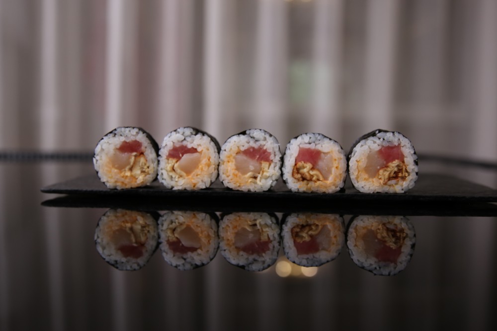 Изысканный ролл с нежным гребешком, форелью и тунцом